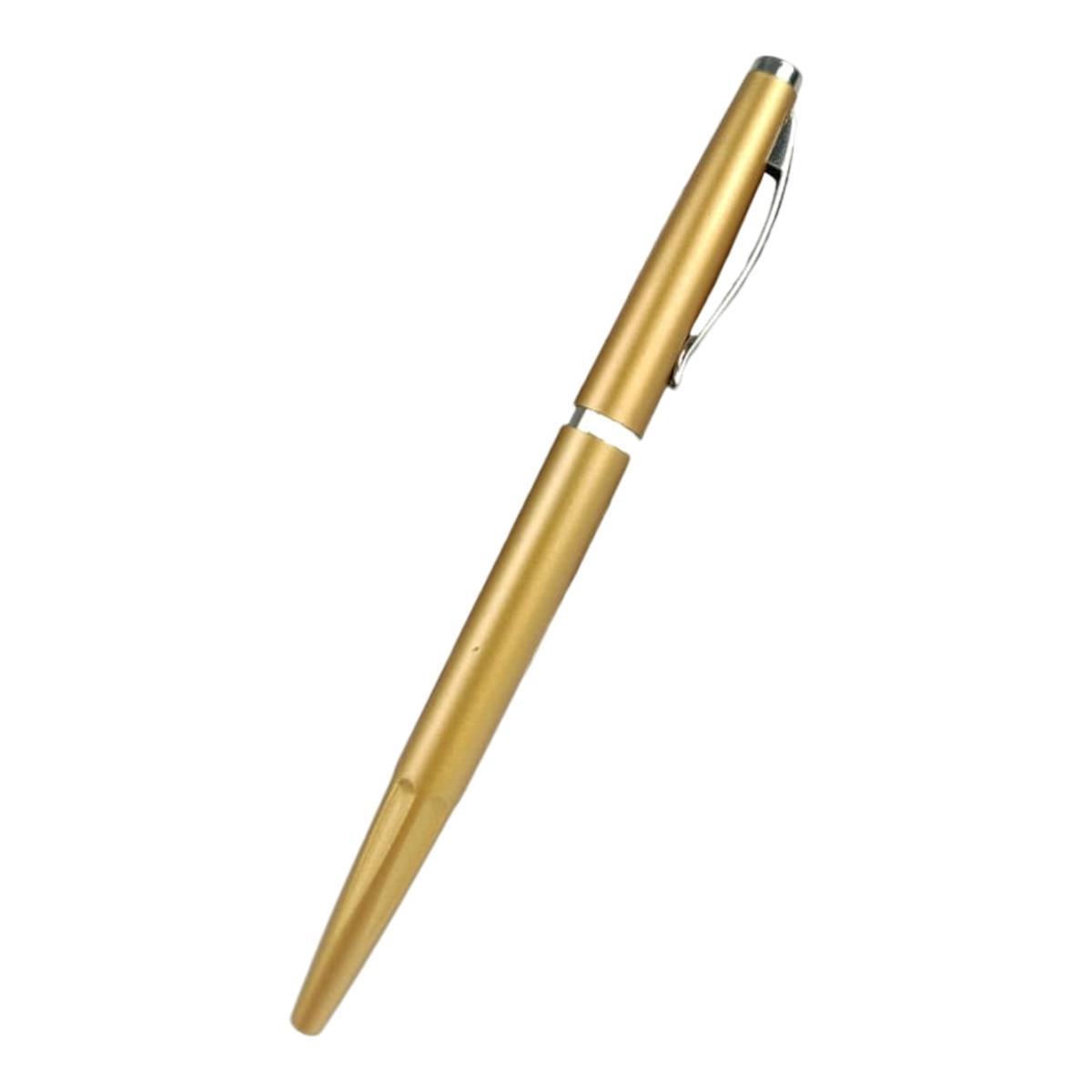 CANETA ESFEROGRÁFICA DE PLÁSTICO COM ESCRITA EM AZUL - COR DOURADO