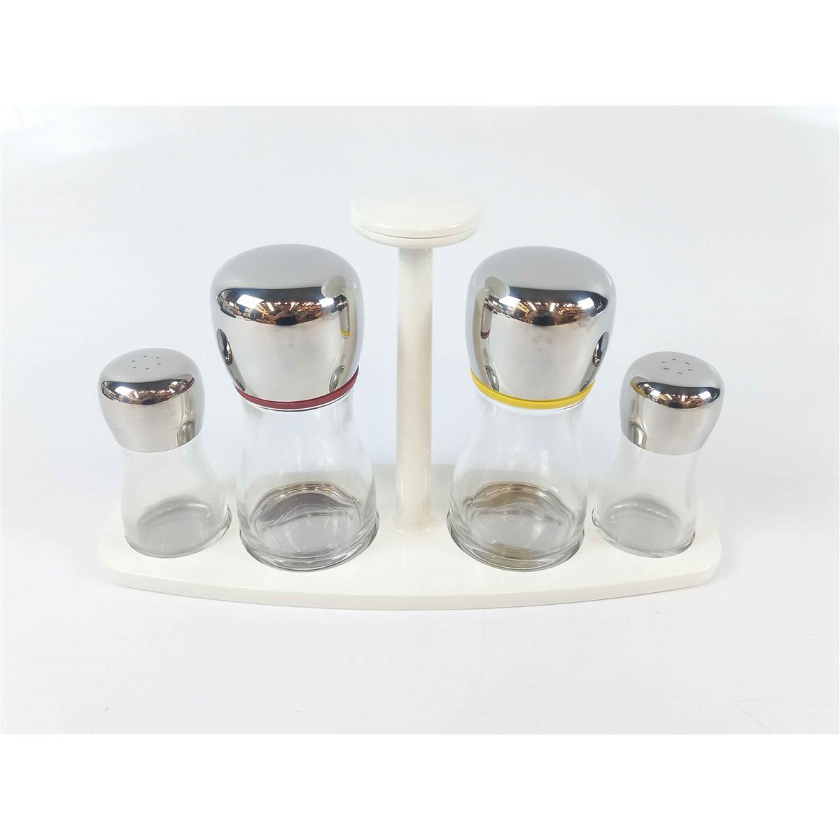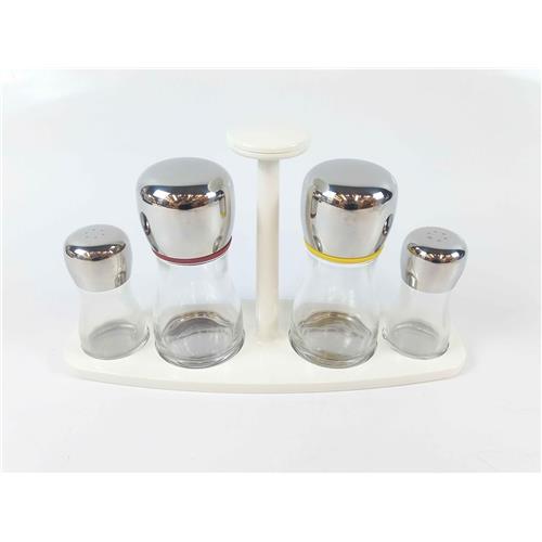 Marc Newson queria criar objetos práticos e fáceis de usar. Os recipientes ergonômicos em formato de ampulheta eram feitos de vidro cristalizado e tampa de aço inoxidável altamente polido, fixada com selo de borracha. A parte superior do suporte do galheteiro levanta-se de forma inovadora para prendê-los enquanto são transportados de e para a mesa, e desliza de volta para baixo para permitir que os galheteiros sejam facilmente acessados quando estão na mesa.