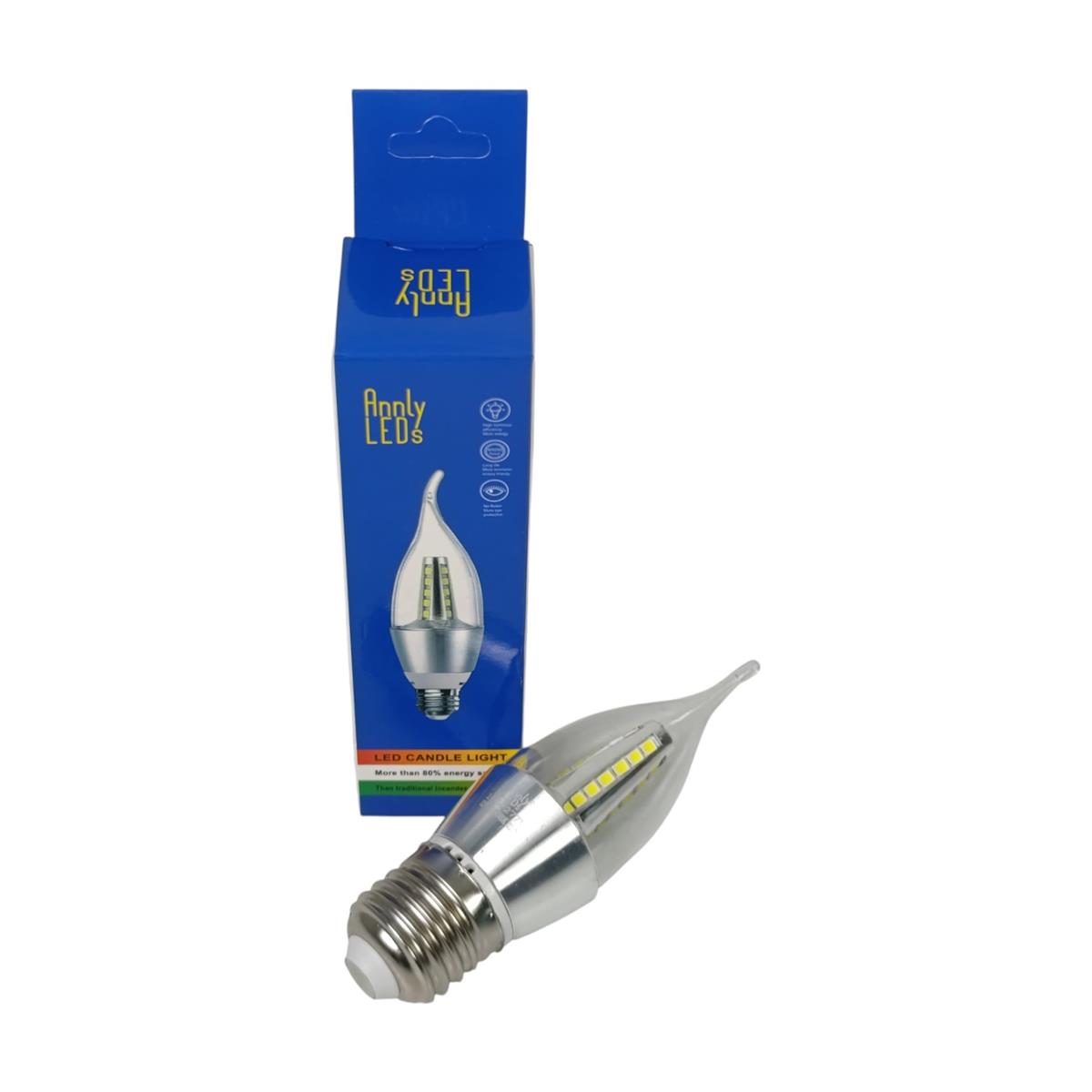 LÂMPADA LED TIPO VELA | SOQUETE E27 | POTÊNCIA 5W | LUZ BRANCO FRIO 6500K | BIVOLT | PROTEÇÃO TRANSPARENTE EM PLÁSTICO